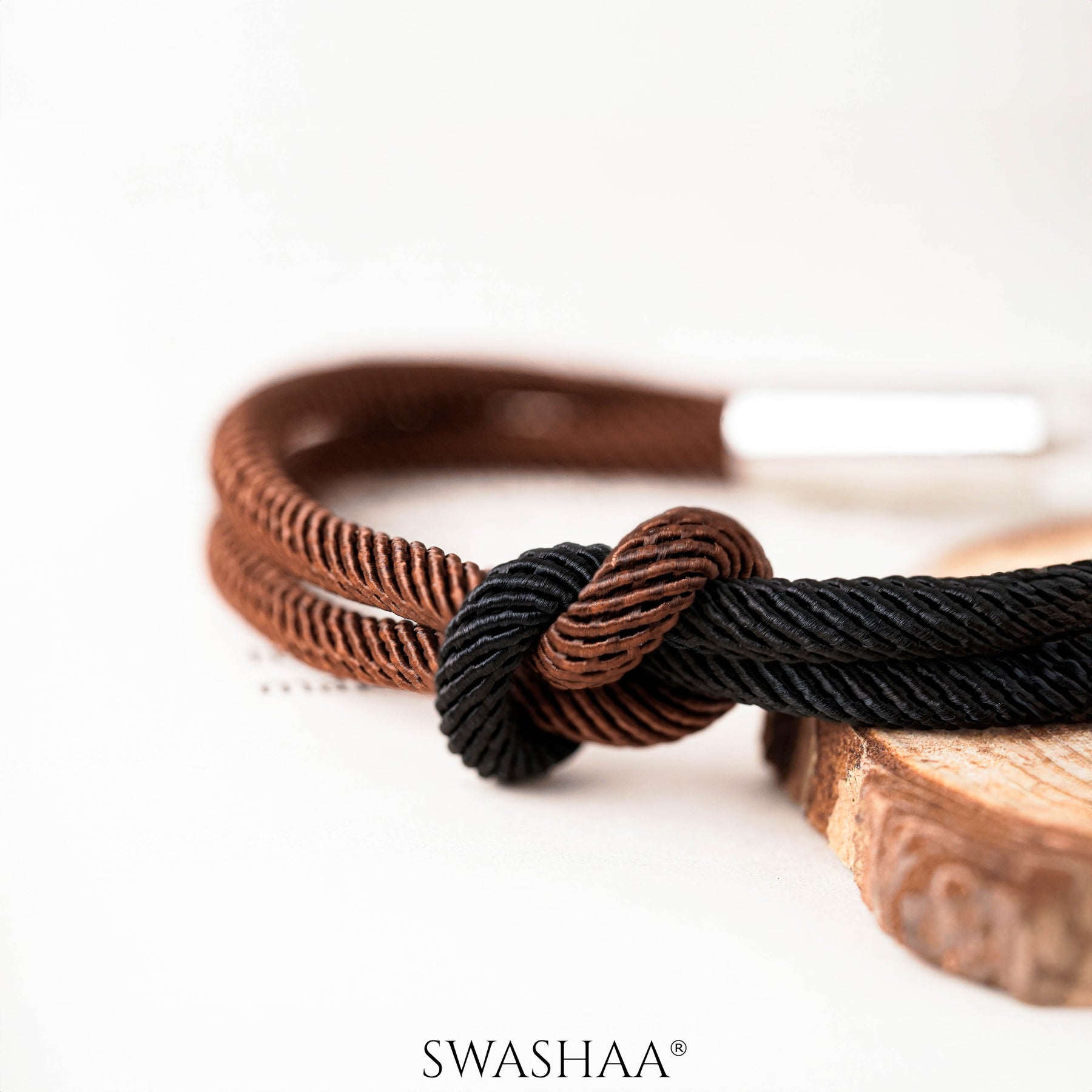 This men's rope bracelet showcases a sophisticated two-tone design with intertwined black and brown ropes. The ropes are crafted with a subtle texture that enhances their visual appeal and adds durability. A knot detail serves as a focal point, offering a rugged yet refined aesthetic. This versatile accessory seamlessly blends casual and formal styles, making it a perfect addition to any wardrobe, whether you're dressing up for an occasion or adding a stylish touch to everyday wear.