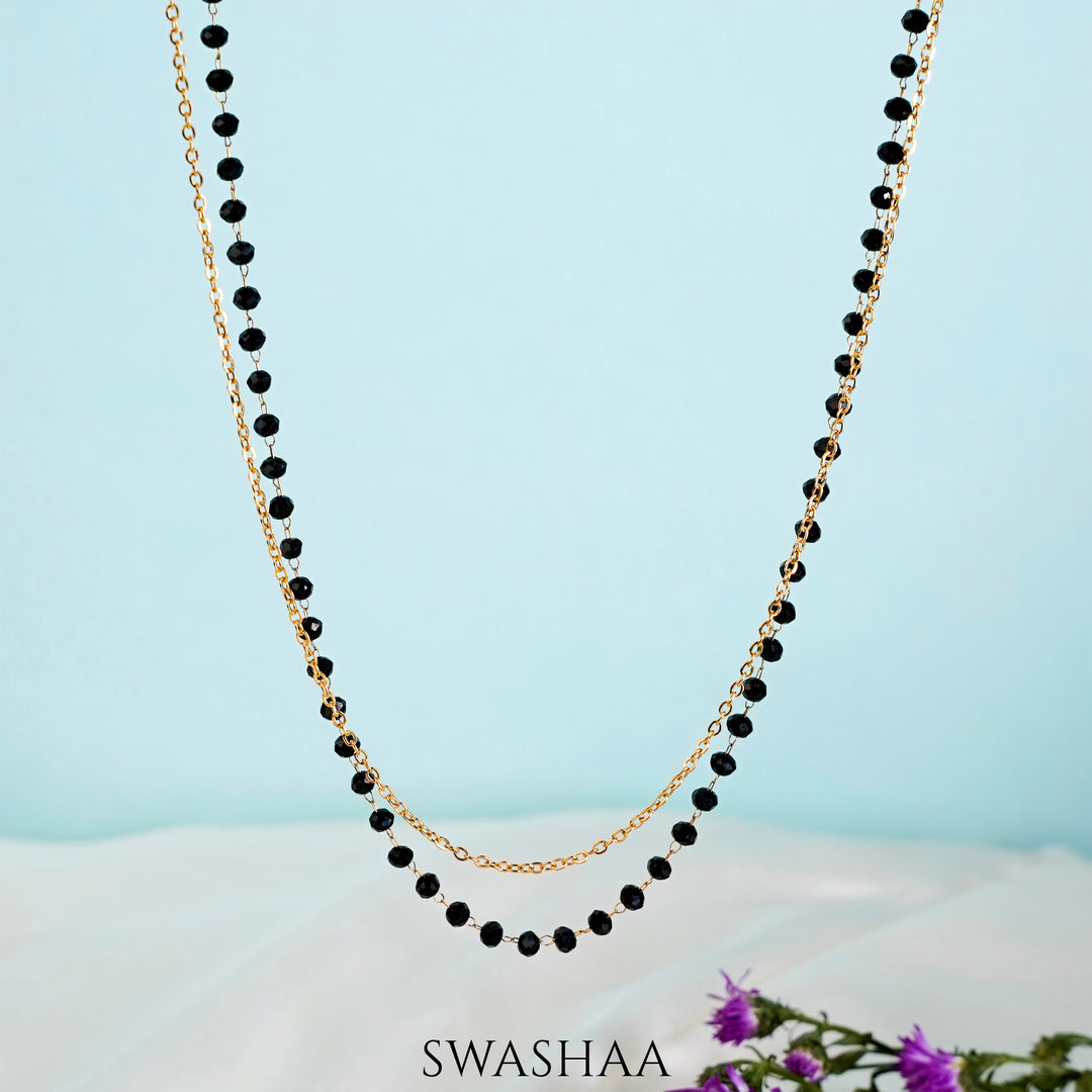 The Slhoka Mangalsutra is a beautiful embodiment of minimalistic everyday elegance. Its design, featuring black and gold stacked chains, captures the essence of simplicity and sophistication, making it the perfect accessory for daily wear.
